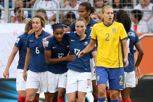La France termine à la quatrième place de la Coupe du monde féminine disputée en Allemagne, suite à sa défaite (2-1) face à la Suède, samedi, lors de la petite finale. Battues (3-1) par les Etats-Unis en demies, les filles de Bruno Bini ont rapidement été menées au score sur un but de l'attaquante lyonnaise Lotta Schelin (29e, 1-0). Elodie Thomis égalisait pourtant pour les Tricolores d'une belle frappe rasante (56e, 1-1). Oqvist laissait même l'équipe nordique à dix suite à un mauvais coup sur Bompastor (68e).