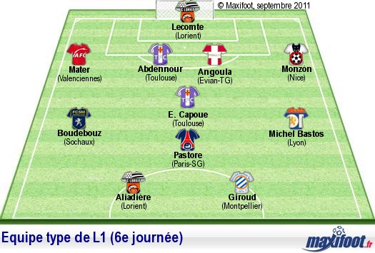 5. Angoula (Evian-TG) - Debuchy (Lille) - B. Gomis (Lyon) - Bedimo (Montpellier) - Monzón (Nice) - Boudebouz (Sochaux) - E. Capoue (Toulouse) : 6 points