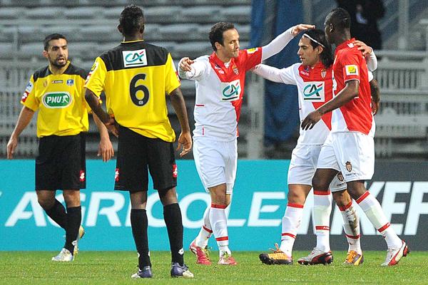Face aux amateurs de Chasselay (CFA) à Gerland, l'AS Monaco n'a pas eu à forcer son talent pour se qualifier pour les 8es de finale de la compétition (0-3). Dominateurs dès l'entame de la rencontre, les Monégasques ont logiquement ouvert le score. Sur un centre de Moutinho, Germain remisait de la tête pour Falcao, complètement démarqué, qui n'avait plus qu'à pousser le ballon au fond des filets (0-1, 29e). Le Colombien aurait même pu obtenir un penalty avant la pause sur un tacle d'Ertek, mais Monsieur Kalt ne bronchait pas. Touché au genou gauche sur l'action, le buteur monégasque quittait les siens sur civière.