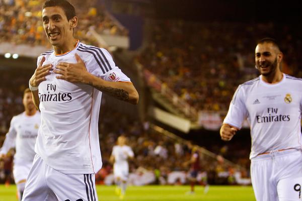 Di Maria allait lui se montrer plus adroit. Lancé magnifiquement par Benzema en une touche, l'Argentin voyait Pinto ne pas avoir la main assez ferme sur sa frappe du gauche (0-1, 11e). Le Barça réagissait en fin de première période par Messi, invisible jusque-là, mais la demi-volée de l'Argentin passait de peu à côté. Les hommes de Tata Martino contrôlaient les opérations après le repos mais continuaient à souffrir sur les contres madrilènes. Une bonne tête de Bartra, oublié par Pepe, pourtant étincelant jusque-là, allait toutefois réveiller les supporters du Barça (1-1, 68e).